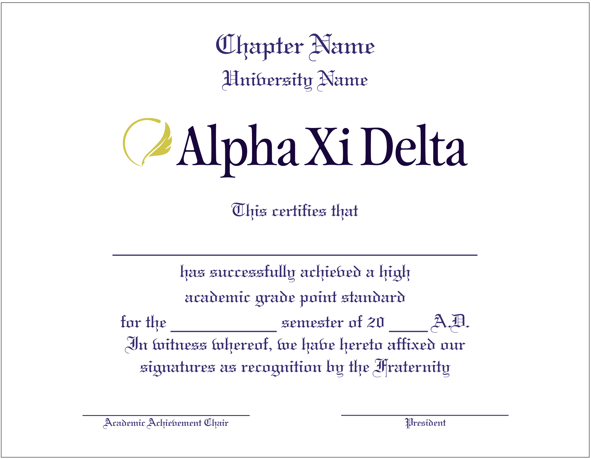 Academic Achievement Certificates Official Branding Alpha Xi Delta