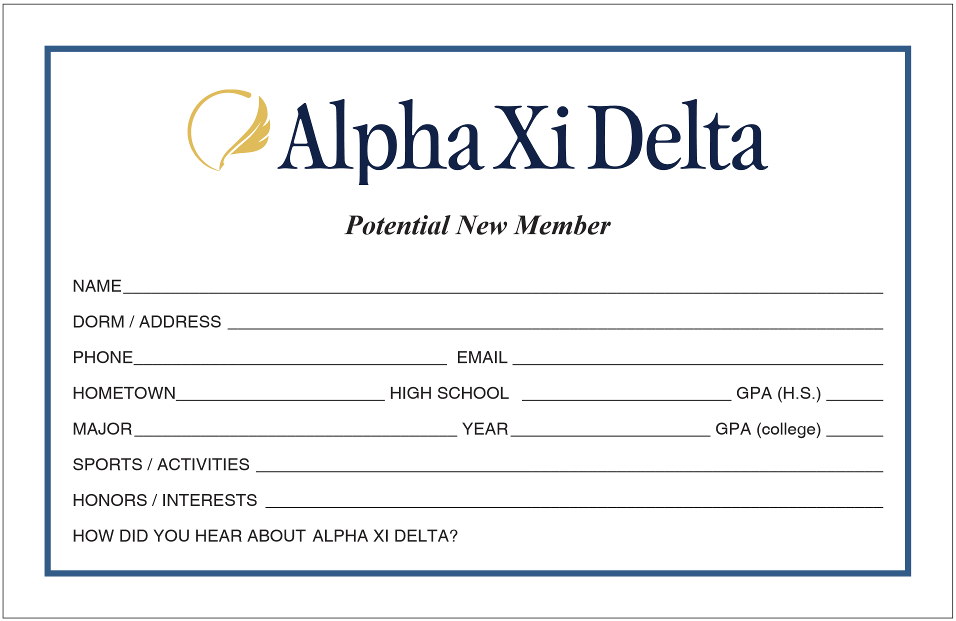 It is all about recruitment, so share who you are with potential members by sharing a potential new member information card that represents your house. Done in a full color flat print on heavy weight card stock featuring your official house branding.