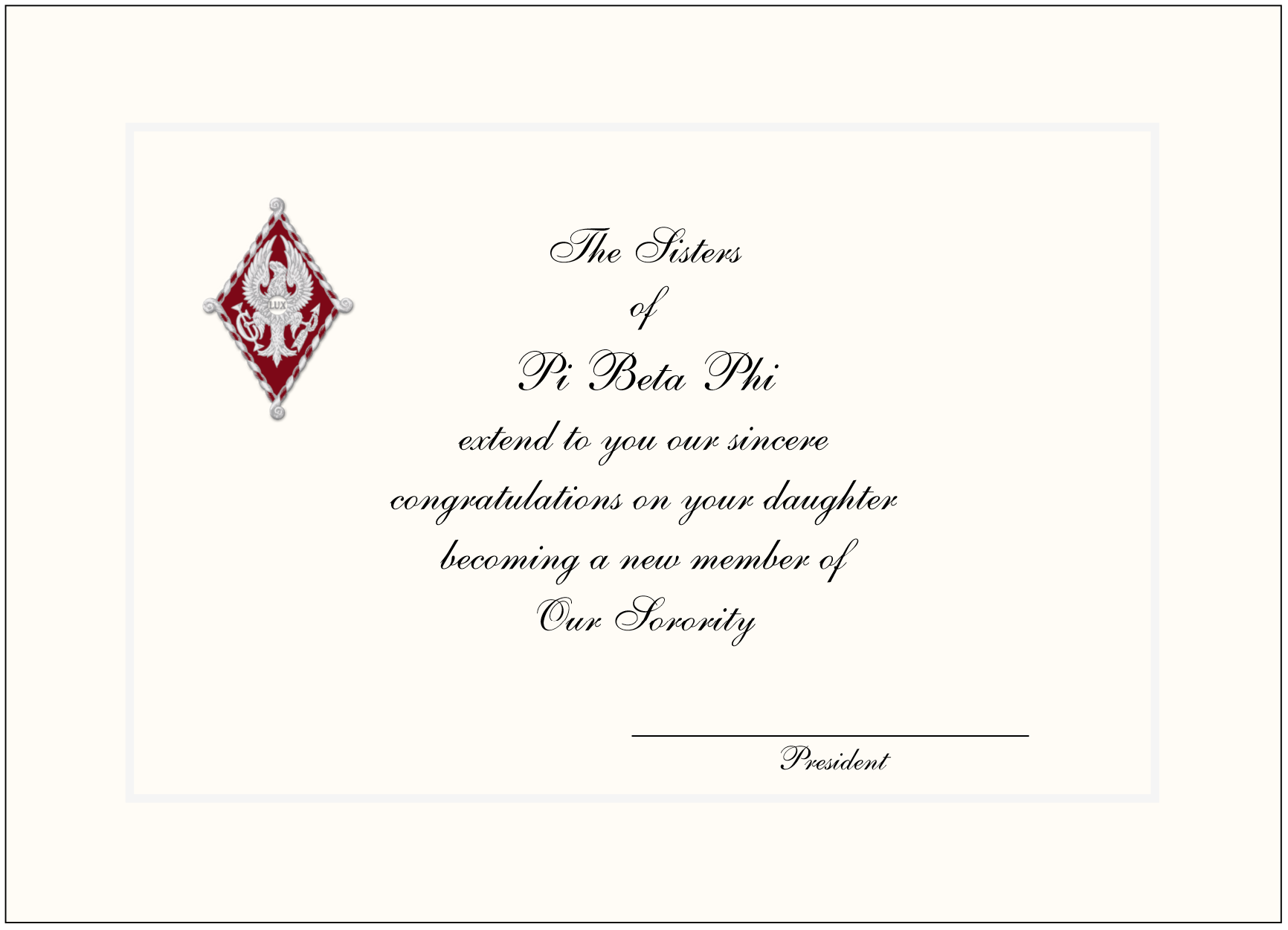 Engraved Parent Congratulations New Member Pi Beta Phi